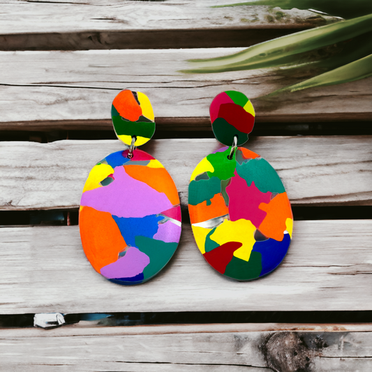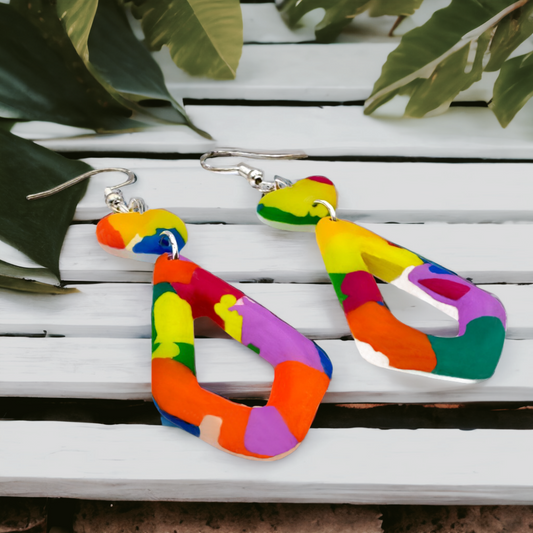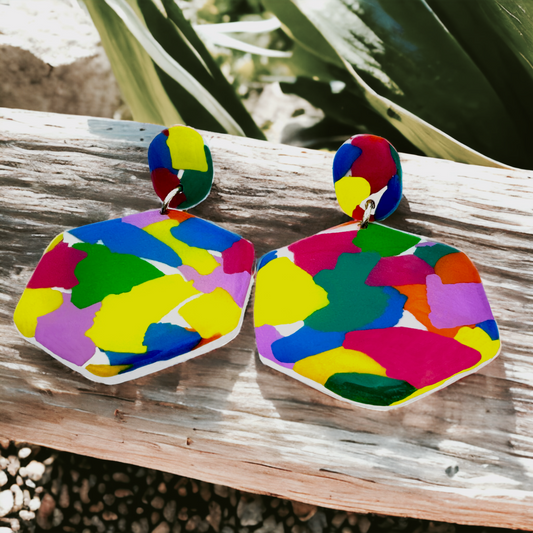 A kaleidoscope of vibrant colours dazzle within the busy terrazzo patterned limited edition Club Tropicana Collection. 🍹🌞🌴 Beach or poolside? Wherever the party is at, pop on a pair of these banging earrings to make your outfit pop, channel your inner diva and throw caution to the wind!