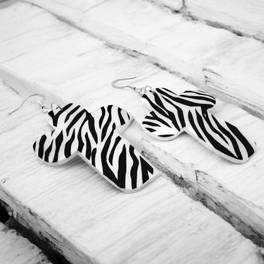 Zebra Monochrome Extra Large Chunky Cross Earrings