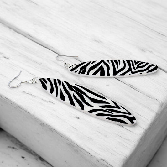 • Made With Love Monochrome Zebra Collection Extra Large Long Oblong Hook Earrings