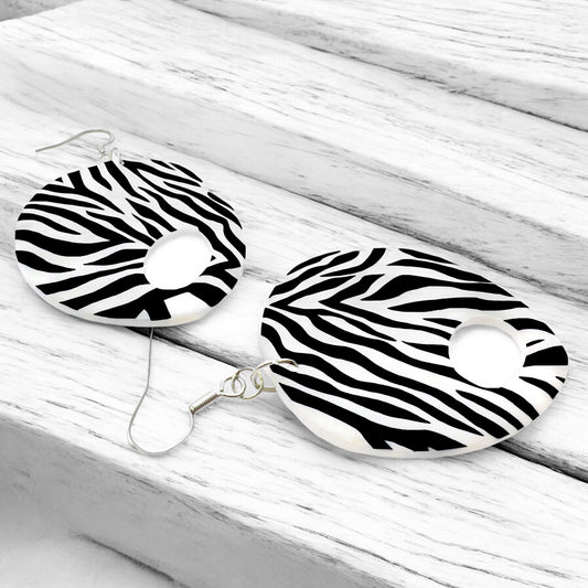 Zebra Monochrome Extra Large Open Pebble Earrings