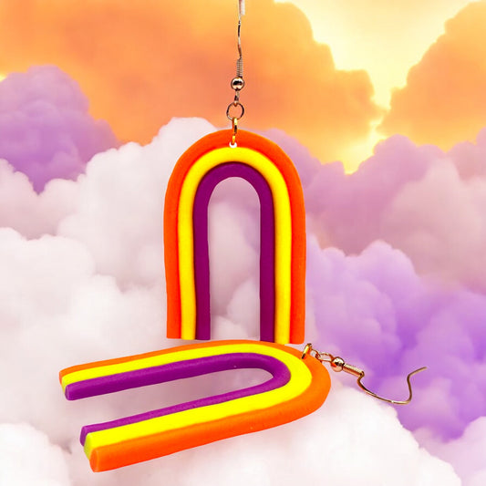 • Made With Love Over The Neon Rainbow Collection Extra Large Orange Yellow Purple Earrings