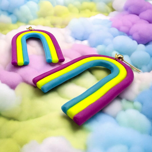 🌈 Over The Neon Rainbow Purple Yellow Blue Extra Large Earrings (Choose Your Own Top)