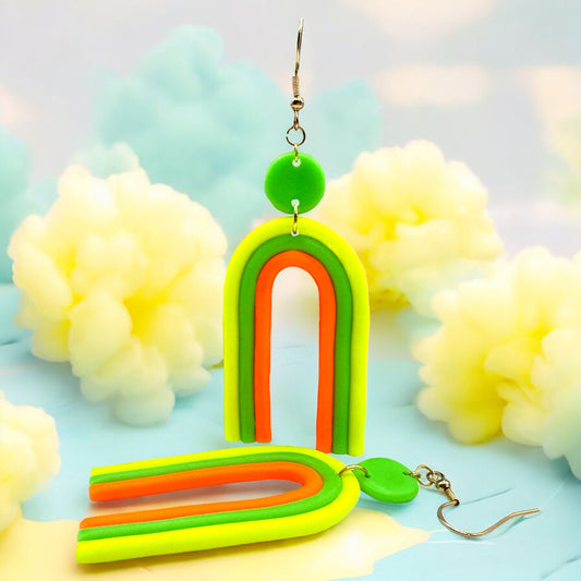• Made With Love Over The Neon Rainbow Collection Extra Large Yellow Green Orange Earrings