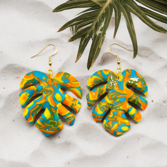 🌺 Hawaiian Dreams Extra Large Monsterra Leaf Earrings