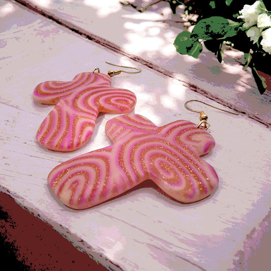 Pink Fizz Extra Large Scalloped Arch Earrings