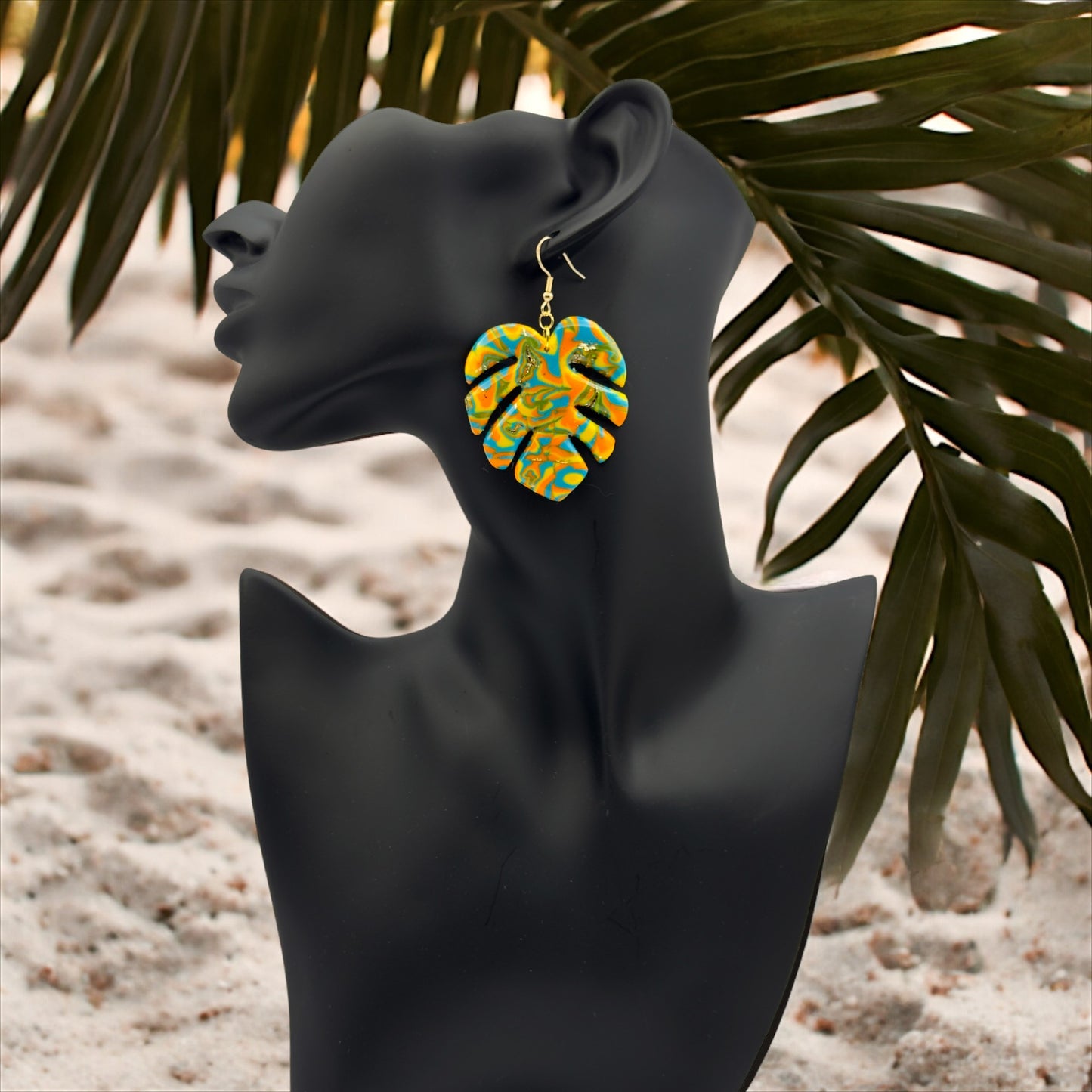 🌺 Hawaiian Dreams Extra Large Monsterra Leaf Earrings