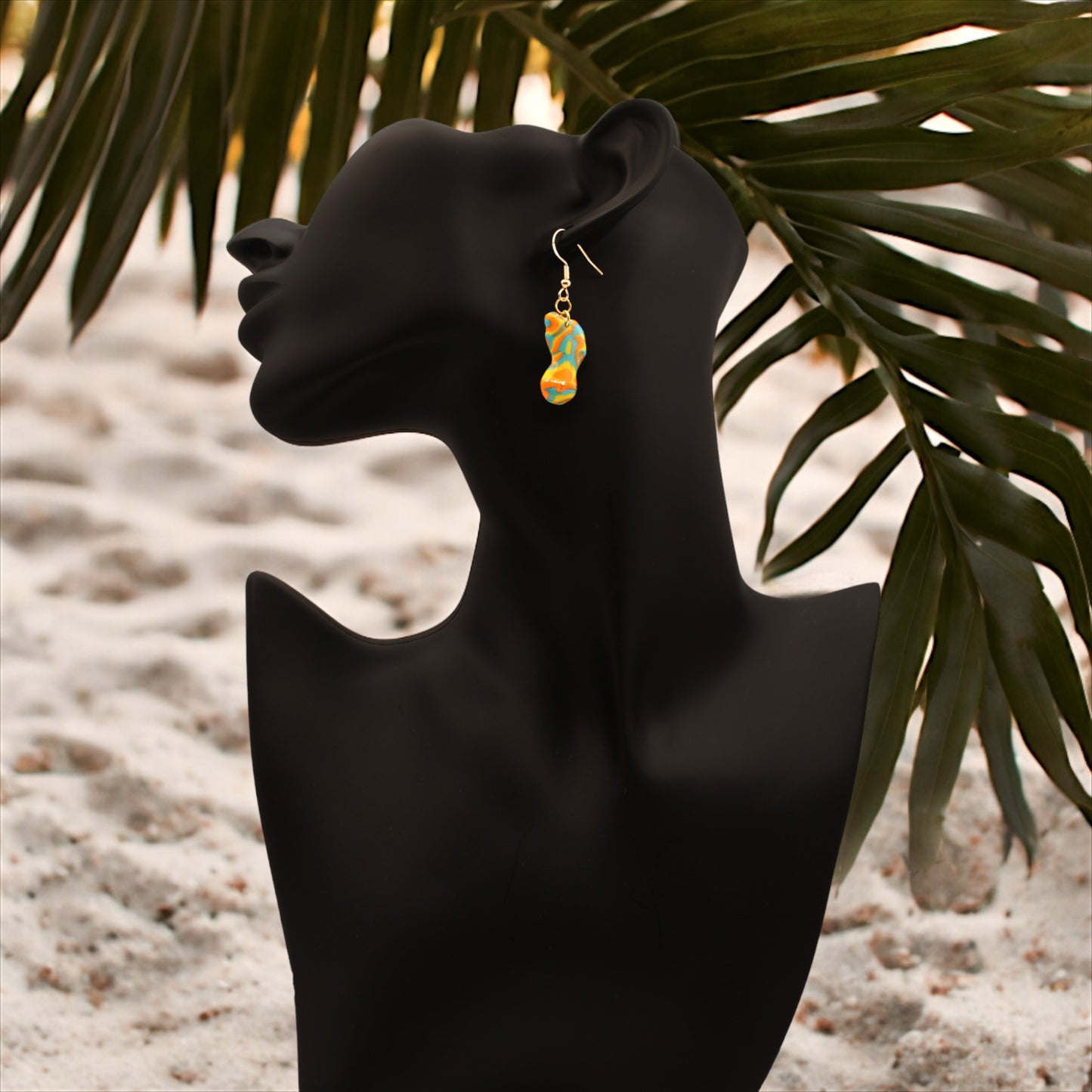 The enchanting 🌺 Hawaiian Dreams collection has been inspired by the mesmerizing natural beauty and vibrant colours of the Hawaiian Islands in the Pacific Ocean. Handmade from polymer clay in shades of turquoise blue, mango orange and sunshine yellow, a gold leaf has also been infused for an extra sparkle. Intricate and totally unique patterns in the clay have been created using the ancient Japanese technique called Mokume Gane which when combined with theses rich colours, creates the essence of a tropical paradise. Each piece in the Hawaiian Dreams collection is a 'one-off' and is perfectly finished with a high gloss resin and 925 stainless steel gold plated hypoallergenic hooks.