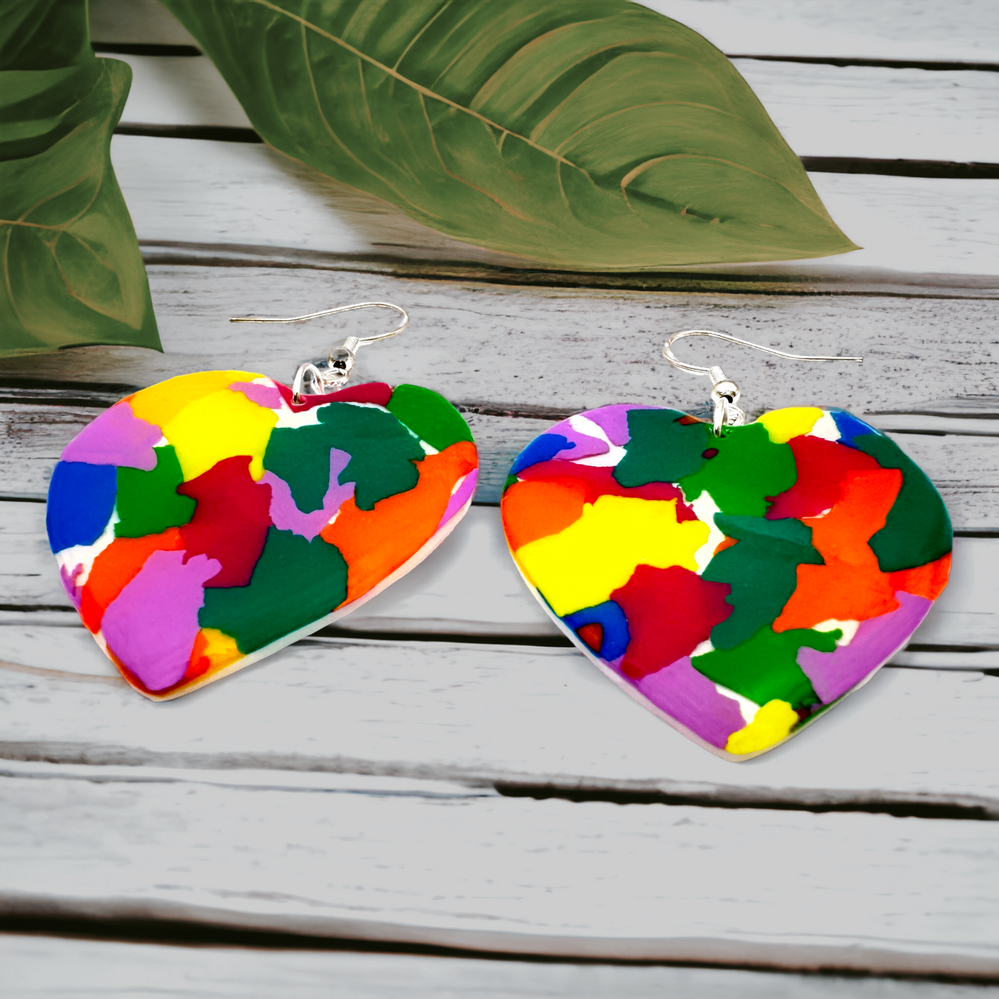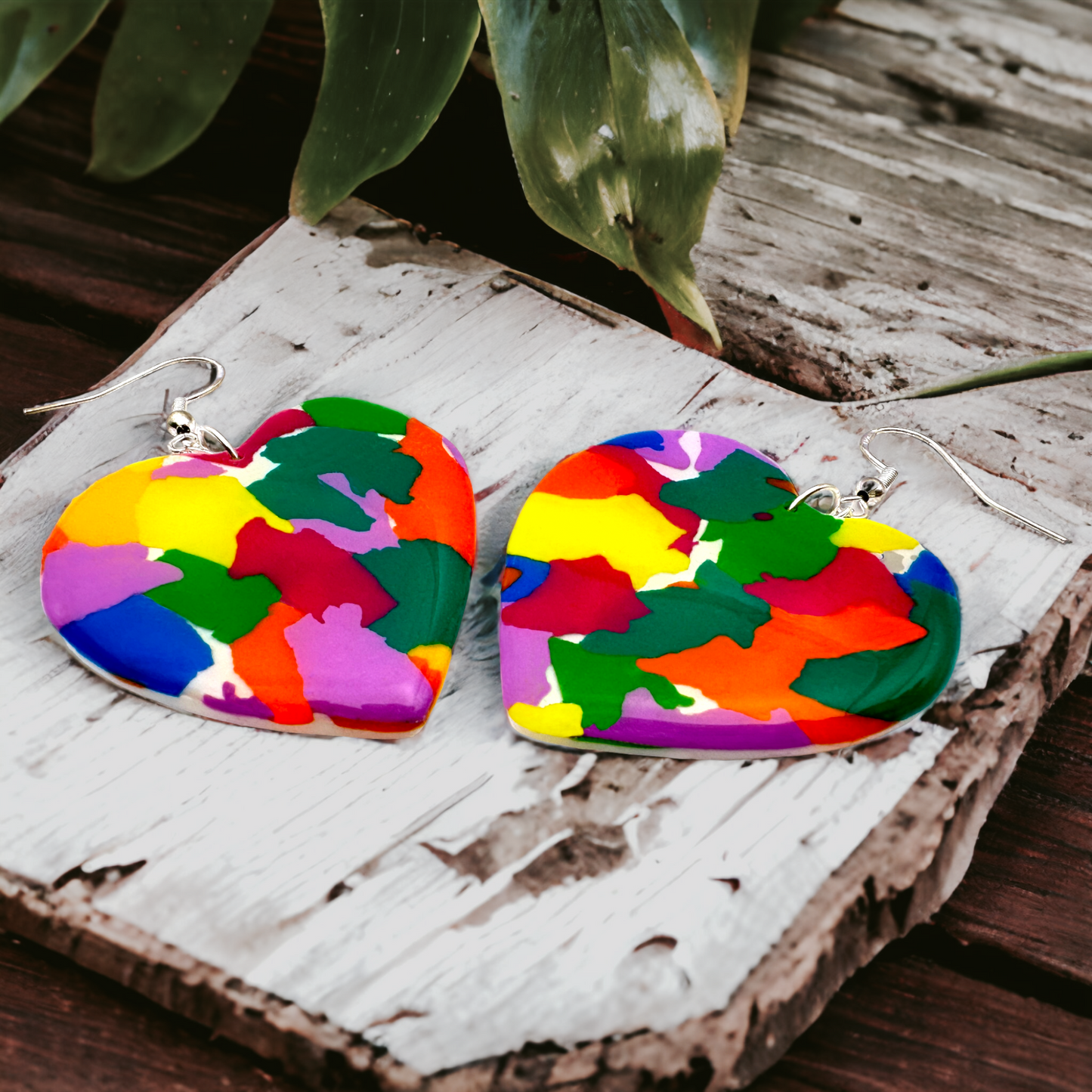 🌞🌴 Beach or poolside party? Make waves and channel your inner diva wearing the limited edition Club Tropicana Large Heart Earrings. Handmade from Polymer Clay using a kaleidoscope of vibrant colours in a terrazzo pattern, they are finished with a high gloss resin and 925 silver plated hypoallergenic hooks. These beautiful earrings are sure to become your 'go to' statement piece that will instantly make any look pop! Think seashells, palm trees, flamingos...think Club Tropicana🍹
