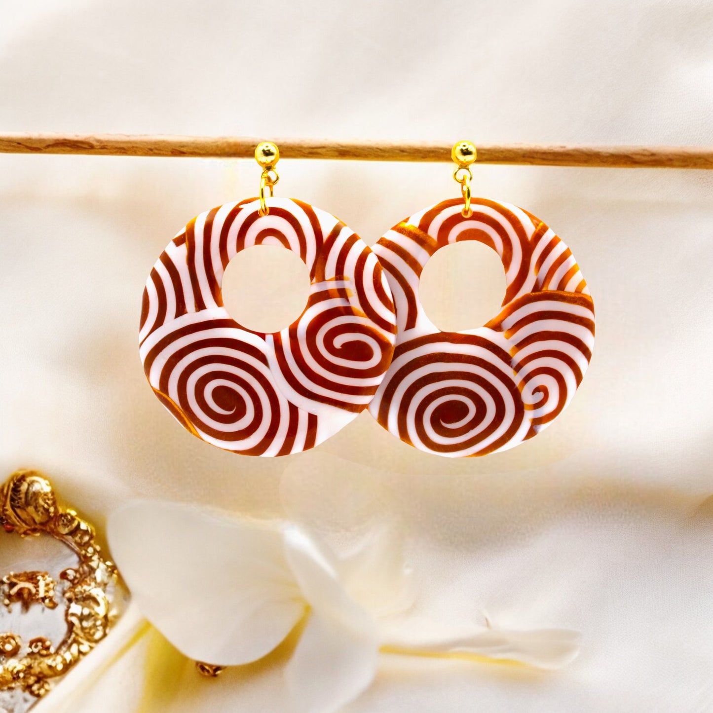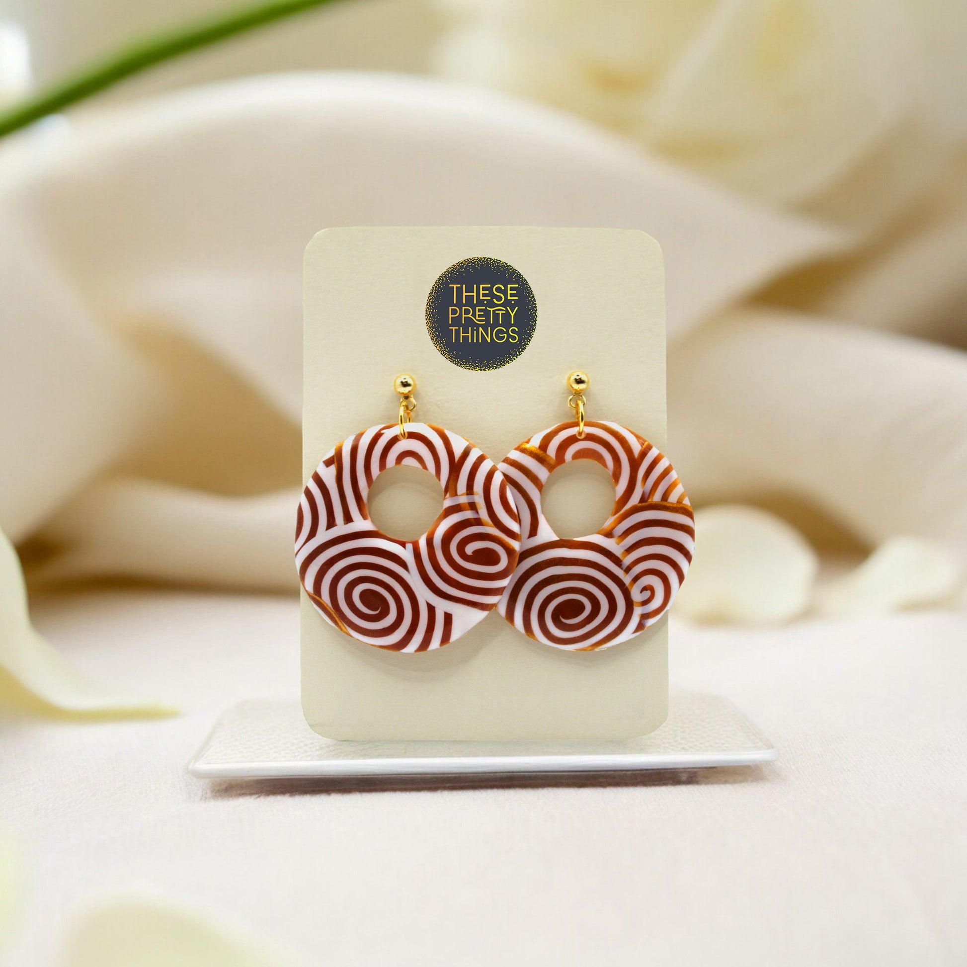 Note: Each earring will have a different pattern but the overall look and colours will be the same. Please be aware that there may be imperfections present on the earrings due to the nature of being handmade.