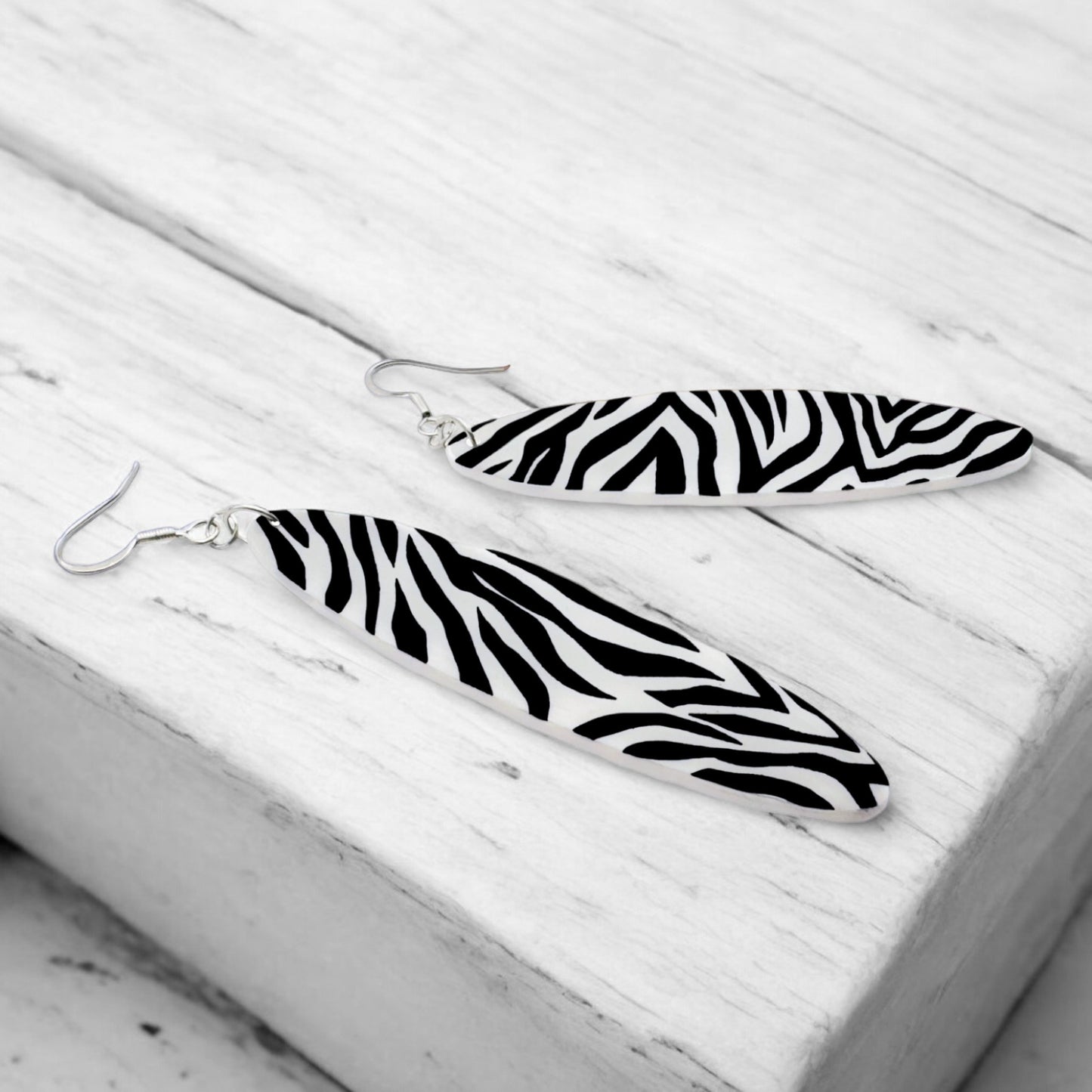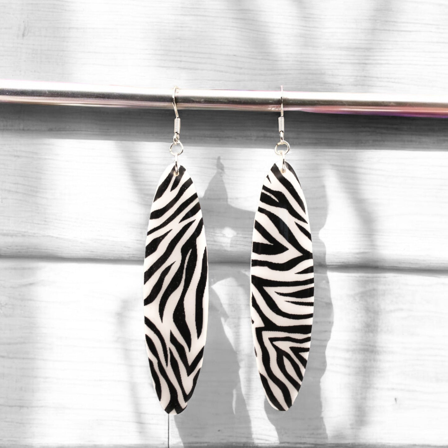 This bold Zebra Monochrome print is sure to add a touch of sass to your day! Made using polymer clay, the contrasting black and white stripes are applied using a silk screen method creating a mesmerizing visual impact, while the sleek lines and intricate details ensure a modern edge. Finished with a high gloss resin and 304 stainless steel hypoallergenic hooks.