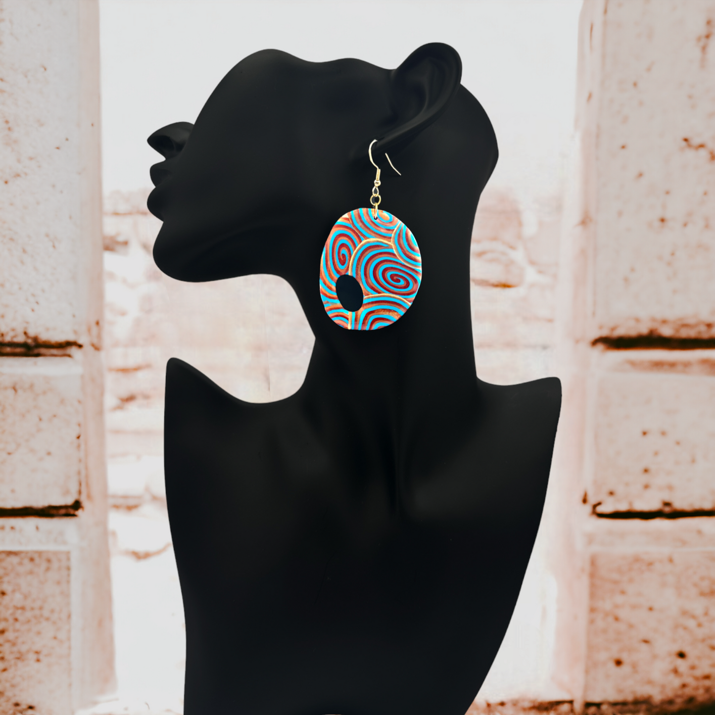 Note: Each earring will have a different pattern but the overall look and colours will be the same. Please be aware that there may be imperfections present on the earrings due to the nature of being handmade.
