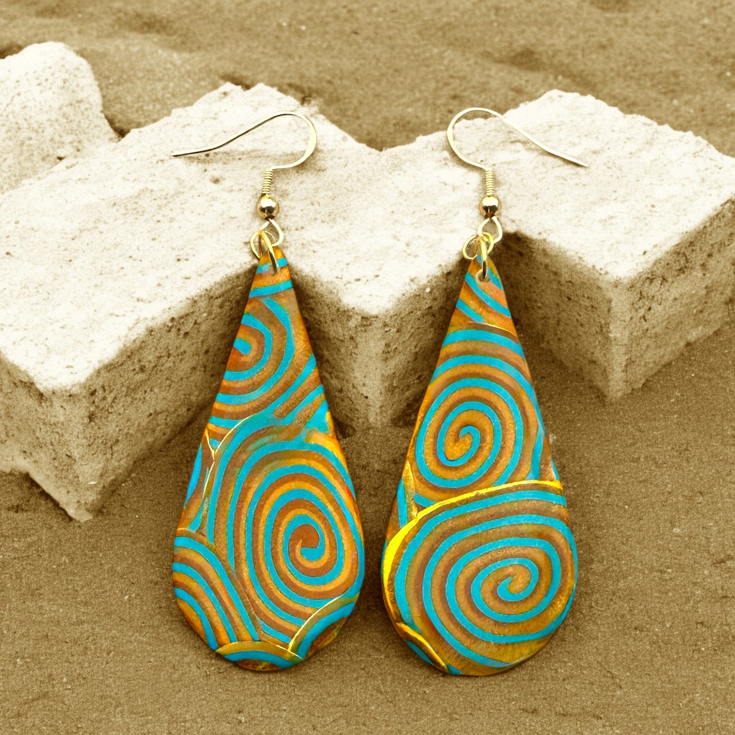 Inspired by ancient Egypt's fascination with symbolism, the Osiris Large Teardrop Earrings focus on the colours associated with the river, sun and heavens. Using a blend of opulent turquoise blue and variations of lustrous gold coloured polymer clay, unique and mesmerising patterns are formed making a captivating piece of wearable art. Finished with a high gloss resin and 925 stainless steel gold plated hypoallergenic hooks.