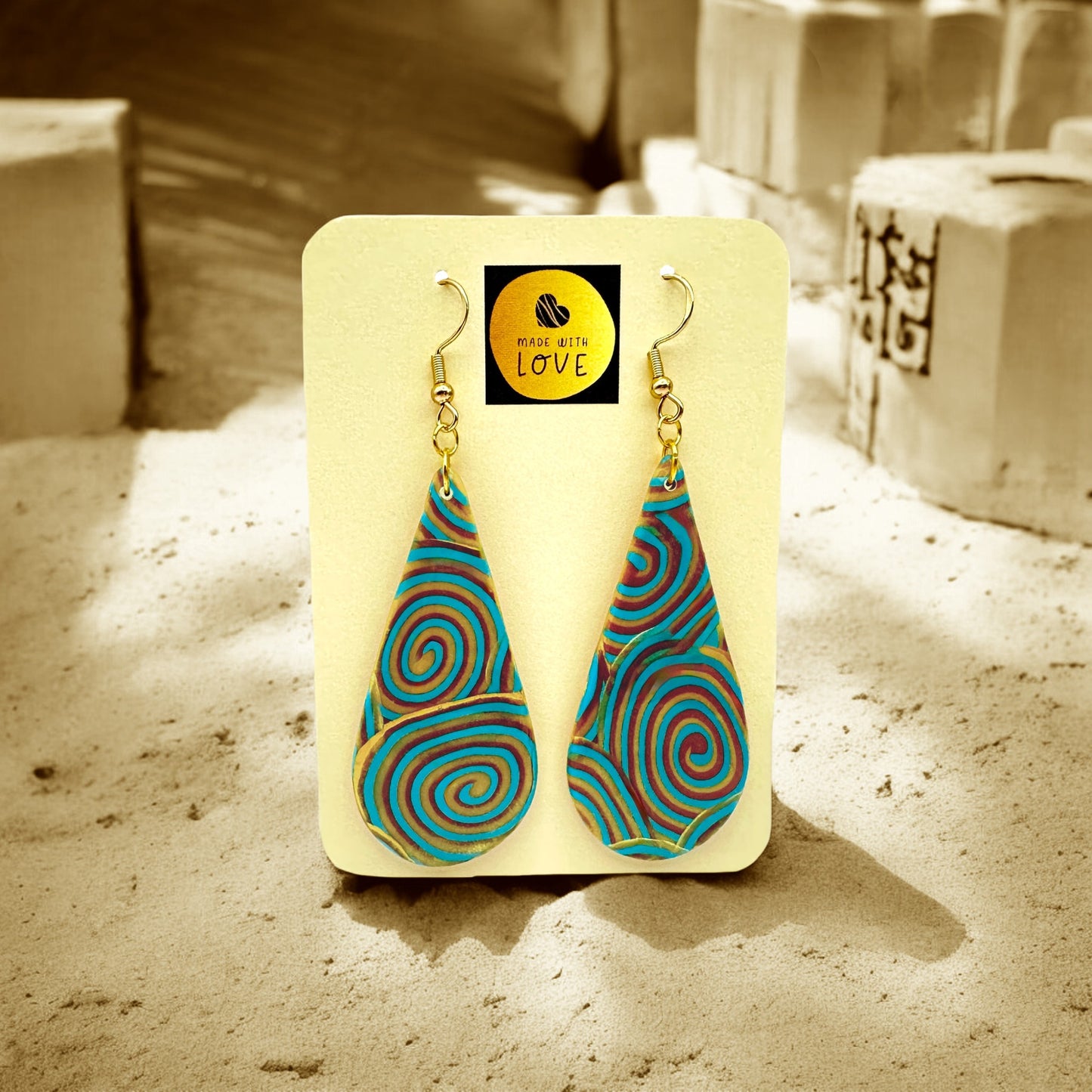 Note: Each earring will have a different pattern but the overall look and colours will be the same. Please be aware that there may be imperfections present on the earrings due to the nature of being handmade.