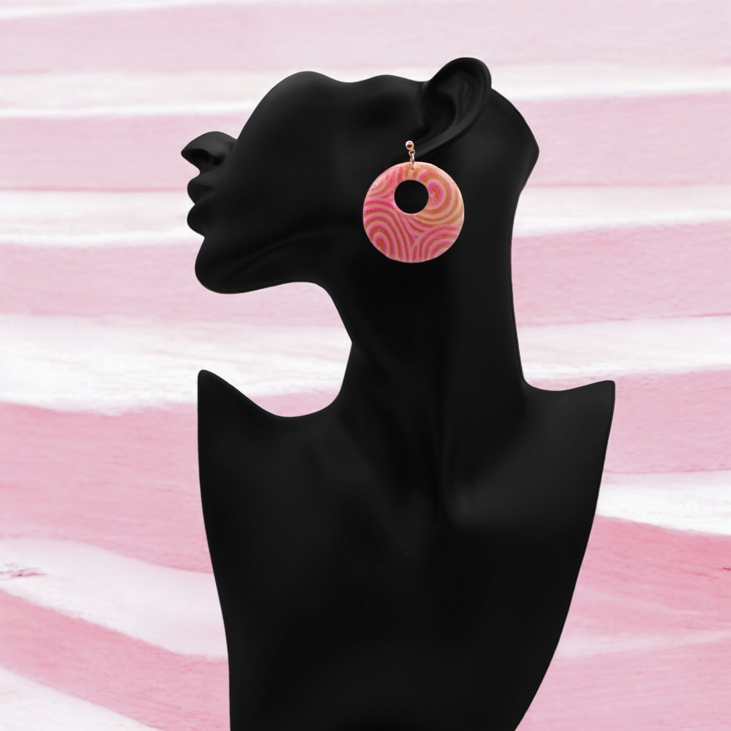 Cheers to the Pink Fizz Collectionđ„These bright and glitzy pieces have been handcrafted from polymer clay using a delicate palette of pinks and creamy ivory infused with a lustrous gold glitter. Made into a beautiful swirling pattern, this combination was mixed with and laid on translucent clay to create an ethereal 'see through' effect when catching light. Finished with a high gloss resin and 304 stainless steel rose gold plated ball studs and matching backs.