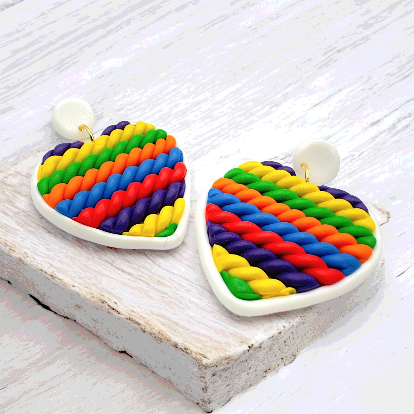 These Electric Dreams Hearts are finished with a complimenting polymer clay circle in white, 304 Stainless Steel Gold Plated Hypoallergenic Posts plus matching backs and a satin polymer varnish.