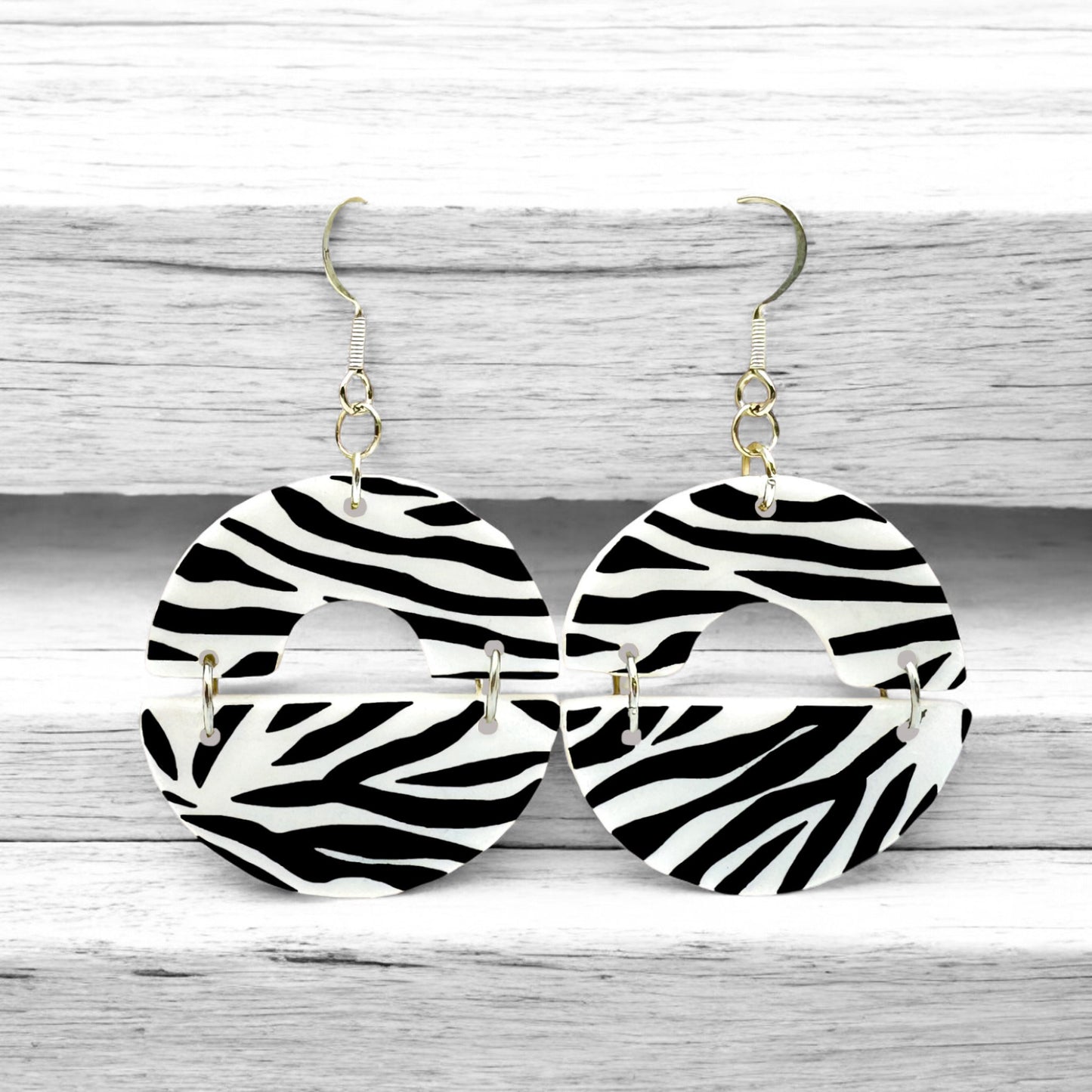 Zebra Monochrome Medium Joined Semi Circles Earrings