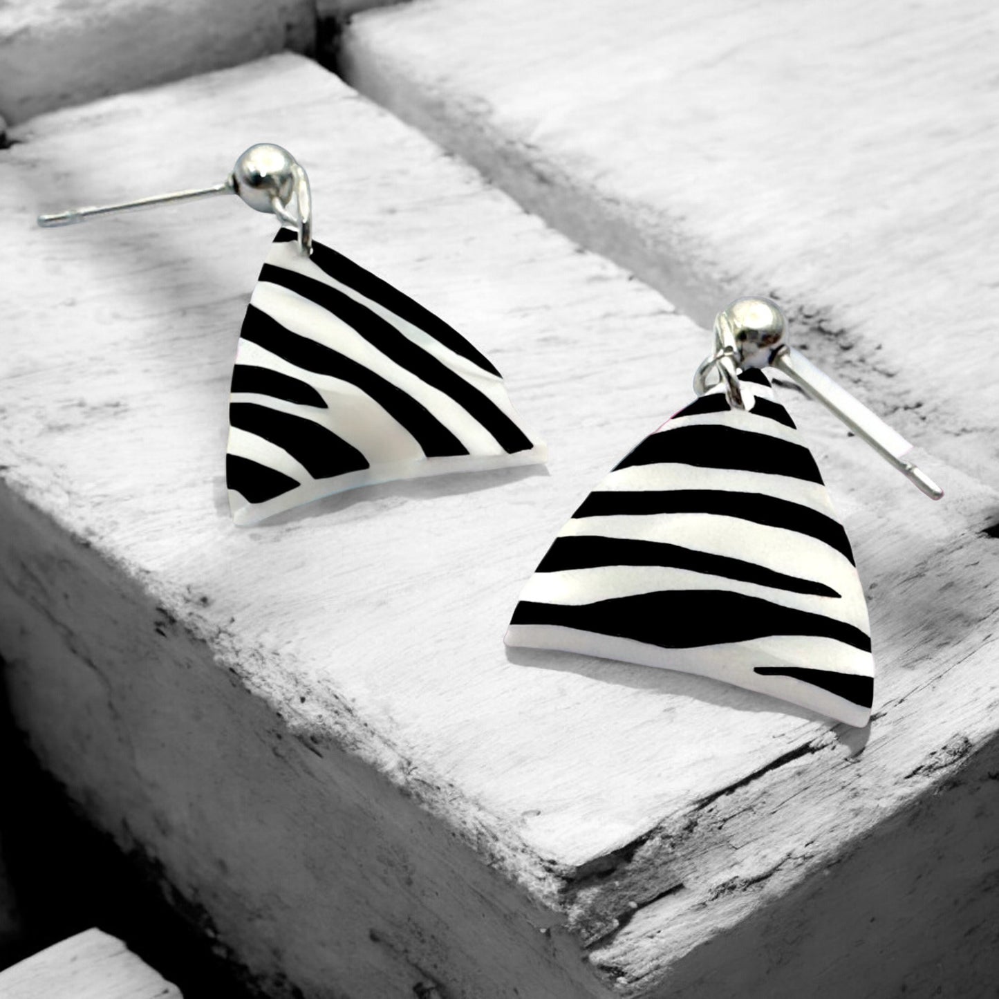 Zebra Monochrome Small Triangle Earrings